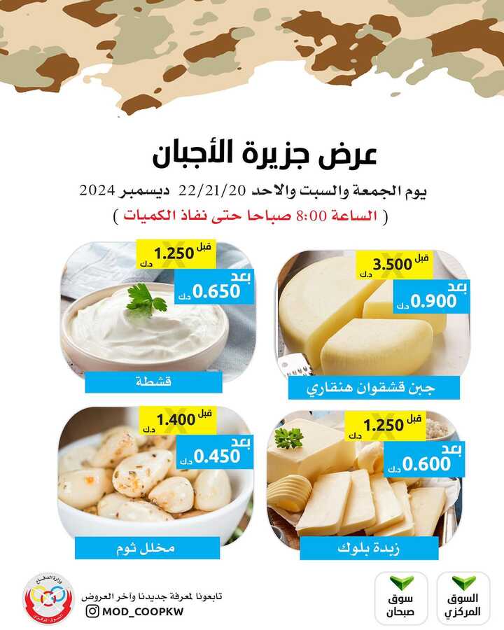 عروض جمعية وزارة الدفاع الاستهلاكية اليوم 20 ديسمبر 2024 الموافق 19 جمادى الاخر 1446 عروض جزيرة الأجبان بصفحة واحدة
