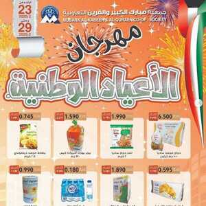 عروض جمعية مبارك الكبير والقرين التعاونية 23/2/2020 الموافق 29 جمادى الثاني 1441 عروض مهرجان الأعياد الوطنية تشكيلة من البضائع والسلع المنوعة عروض ابتداء من 23 الى 29 فبراير 2020