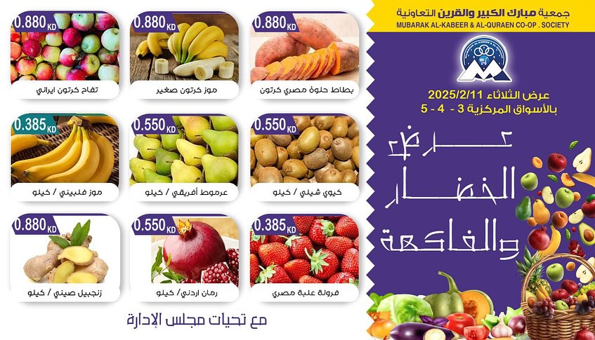 عروض جمعية مبارك الكبير و القرين اليوم 11 فبراير 2025 الموافق 12 شعبان 1446 عروض الخضار و الفواكه بصفحة واحدة