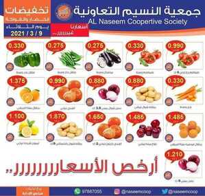 عروض جمعية النسيم التعاونية الكويت الثلاثاء 9 مارس 2021 الموافق 25 رجب 1442 نخفيضات الخضار والفواكه الجديدة أسعار غير وخضار وفواكه غير