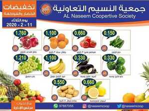 عروض جمعية النسيم التعاونية الثلاثاء 11/2/2020 الموافق 17 جمادى الثاني 1441 عروض جديدة من جمعية النسيم تخفيضات الخضار والفواكه