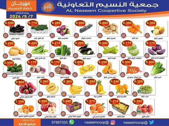 عروض جمعية النسيم التعاونية اليوم 7 مايو 2024 الموافق 28 شوال 1445 عروض الخضار والفاكهة بصفحة واحدة