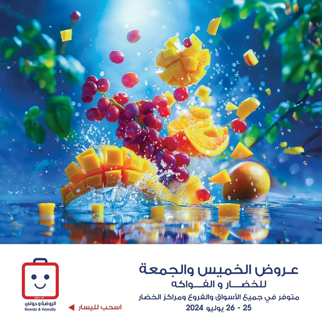 عروض جمعية الروضة و حولي التعاونية اليوم 25 يوليو 2024 الموافق 19 محرم 1446 عروض الخضار و الفواكه بصفحة واحدة