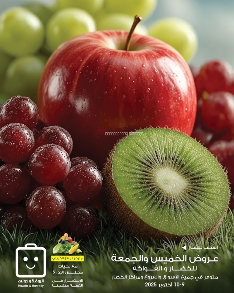 عروض جمعية الروضة و حولي التعاونية اليوم 9 أكتوبر 2025 الموافق 16 ربيع الاخر 1447 عروض الخضار و الفواكه