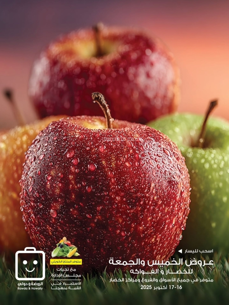 عروض جمعية الروضة و حولي التعاونية اليوم 16 أكتوبر 2025 الموافق 23 ربيع الاخر 1447 عروض الخضار و الفواكه . تابعوا أحدث عروض السعودية المتوفرة في جميع المتاجر و الهايبرات بأسعار منافسة 16-10-2025 الموافق 23-4-1447