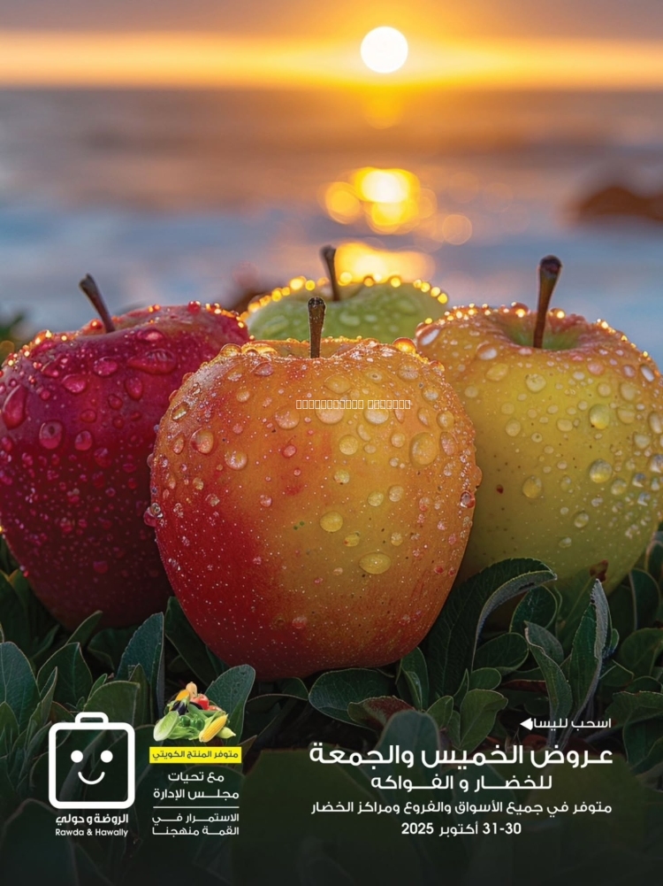 عروض جمعية الروضة و حولي التعاونية اليوم 30 أكتوبر 2025 الموافق 8 جمادى الاول 1447 عروض الخضار و الفواكه . تابعوا أحدث عروض السعودية المتوفرة في جميع المتاجر و الهايبرات بأسعار منافسة 30-10-2025 الموافق 8-5-1447