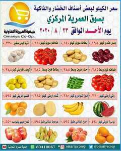 عروض جمعية العمرية التعاونية الكويت الأحد 23/8/2020 الموفق 4 محرم 1441 مهرجان الخضار والفاكهة بسوق العمرية المركزي ليوم الاحد 23 أغسطس 2020 تشكيلة من البخضروات والفواكه الطازجة