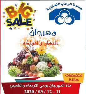 عروض جمعية الرحاب التعاونية الكويت 11/3/2020 الموافق 16 رجب 1441 عروض مهرجان الخضار والفواكه ليومي الاربعاء والخميس تخفيضات هائلة على الخضار والفاكهة الطازجة