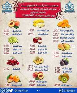 عروض جمعية الرقة التعاونية الكويت الاثنين 17/8/2020 الموافق 27 ذو الحجة 1441 مهرجان الخضروات والفواكه الاسبوعي بالسوق المركزي اليوم الاثنين 17 أغسطس 2020