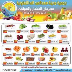 عروض جمعية سعد العبد الله التعاونية الكويت الأربعاء 30/12/2020 الموافق 15 جمادى الأولى 1442 مهرجان الخضار والفواكه الأسبوعي الاربعاء خضروات وفواكه طازجة