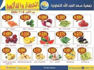 عروض جمعية سعد العبد الله التعاونية الكويت 6/7/2020 الموافق 15 ذو القعدة 1441 جديد عروض الخضار والفاكهة الطازجة والمنوعة اليوم الاثنين 6 يوليو 2020 لاتفوتكم متابعتها
