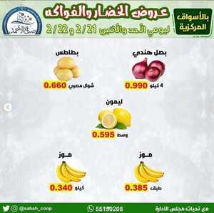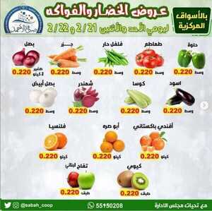 عروض جمعية صباح الأحمد التعاونية الكويت من 21 فبراير 2021 الموافق 9 رجب 1442 عروض الخضار والفواكه الاسبوعية ليومي الاحد والاثنين 21/22 فبراير 2021