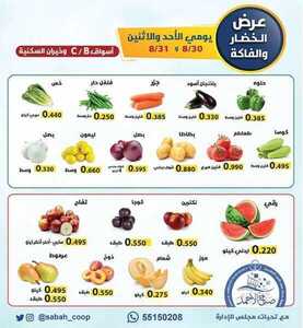 عروض جمعية صباح الأحمد التعاونية الكويت من 30/8/2020 الموافق 11 محرم 1442 عروض الخضار والفاكهة ليومي الاحد والاثنين 30-31 أغسطس 2020 مجموعة واسعة ومنوعة من الخضار والفاكهة الطازجة