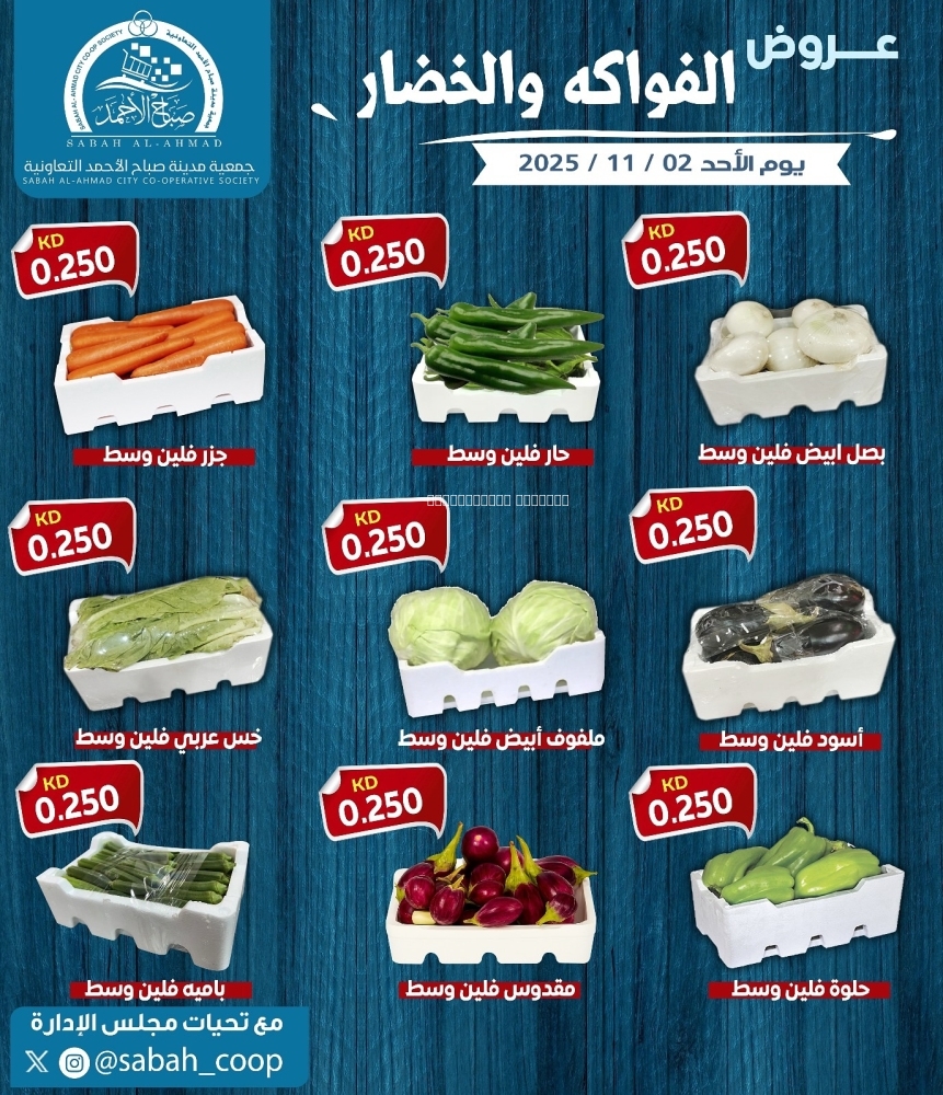 عروض جمعية صباح الاحمد التعاونية اليوم 2 نوفمبر 2025 الموافق 11 جمادى الاول 1447 عروض الخضار و الفواكه . تابعوا أحدث عروض السعودية المتوفرة في جميع المتاجر و الهايبرات بأسعار منافسة 2-11-2025 الموافق 11-5-1447 عروض جمعية صباح الاحمد التعاونية اليوم : تتضمن تخفيضات جمعية صباح الاحمد التعاونية كافكو ملوخية مجمدة ٢ حبة ٤٠٠ جرام . و ايضا كذلك امول جبن بصل باراتا ٥٠٠ جرام . لا ننسى ايضا كذلك روزاري نقانق دجاج ٥ حبة ٣٤٠ جرام . و يوجد هنا كذلك سيارا دجاج كامل ٢ × ١٠٠٠ جرام . كما و لدينا ايضا كذلك تاببوكا مجمدة ريتش فروزن ٢ حبة ٧٥٠ جرام . و لا تنسوا ايضا كذلك مستحضر نشوي للحلوى ريتش فروزن ٣ × ٧٥٠ جرام . ترقبوا كذلك المزيد من العروض و المفاجات في كل أسبوع . عروض جمعية صباح الاحمد التعاونية لهذا الأسبوع: و مما تقدمه لكم أيضاً عروض اليوم من عروض علا كريم جوز الهند ٣ حبة ٤٠٠ مل . و ايضا كذلك سالات زيت دوار الشمس ٢ لتر . لا ننسى ايضا كذلك ديليس أرز كالروز ٥ كيلو جرام . و يوجد هنا كذلك البادية حليب جوز الهند المجفف ٢ حبة ٣٠٠ جرام . كما و لدينا ايضا كذلك برادماس ٥٥٥ أرز بالكتان ماتا ٥ كيلو جرام . و لا تنسوا ايضا كذلك الويدز أرز ياسمين ٥ كيلو غرام . واليكم الصور الآتية على موقع عروض الكويت