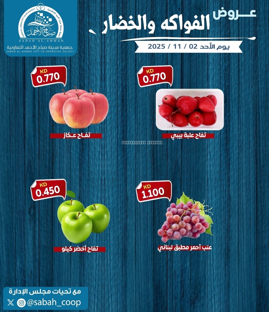 عروض جمعية صباح الاحمد التعاونية اليوم 2 نوفمبر 2025 الموافق 11 جمادى الاول 1447 عروض الخضار و الفواكه