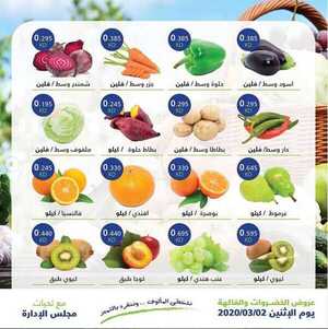 عروض جمعية صباح السالم التعاونية الكويت 2 مارس 2020 الموافق 7 رجب 1441 عروض الخضار والفاكهة ليوم واحد فقط الاثنين 2 مارس 2020