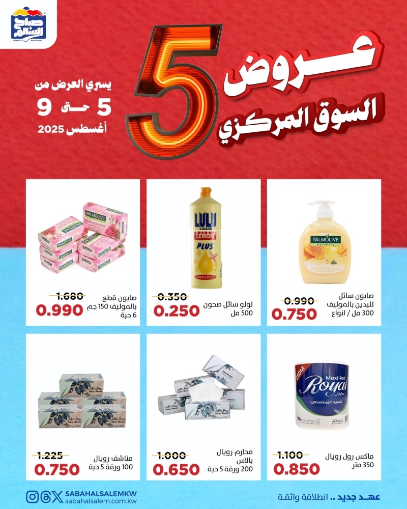 عروض جمعية صباح السالم التعاونية اليوم 5 أغسطس 2025 الموافق 11 صفر 1447 عروض السوق المركزي . تابعوا أحدث عروض السعودية المتوفرة في جميع المتاجر و الهايبرات بأسعار منافسة 5-8-2025 الموافق 11-2-1447 عروض جمعية صباح السالم التعاونية الطازجة : تجدون ضمن تخفيضات شهر أغسطس اليوم تخفيضات مدهشة على المواد الغذائية و العروض الترويجية الخاصة المتوفرة لديها منها : شعيرية شان ٣ حبة ١٥٠ جرام و ١ حبة هدية . و ايضا كذلك عصير سريع التحضير متنوع الضيافة ٢,٥ كيلو جرام . لا ننسى ايضا كذلك فارم فريش ٣ حبة ٤٠٠ جرام . و يوجد هنا كذلك براتا سادة كاوان ٣ حبة ٤٠٠ جرام . كما و لدينا ايضا كذلك براتا مالابار متنوعة اي دي ٣ حبة ٤٠٠ جرام . و لا تنسوا ايضا كذلك اصلى عربي خردل مطحون ٥٠ جرام . عروض جمعية صباح السالم التعاونية لشهر أغسطس : تشمل التخفيضات كذلك لهذا الأسبوع حسم رائع و أسعار منافسة في السوق على المنتجات المتنوعة منها : معروك حلبي سادة من مخابز سي فان بالحبة . و ايضا كذلك كعك بالسمسم من مخابز سي فان بالكيلو جرام . لا ننسى ايضا كذلك خبز عربي حجم كبير من مخابز سي فان بالعبوة . و يوجد هنا كذلك عجينة جلاش سنبلة ٢ حبة ٥٠٠ جرام . كما و لدينا ايضا كذلك رقائق هشة بف باستري سنبلة ٢ حبة ٤٠٠ جرام . و إليكم الصور الأتية على موقع الكويت.