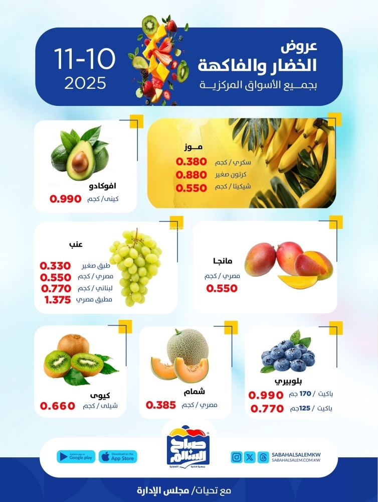 عروض جمعية صباح السالم التعاونية اليوم 10 نوفمبر 2025 الموافق 19 جمادى الاول 1447 عروض الخضار و الفواكه . تابعوا أحدث عروض السعودية المتوفرة في جميع المتاجر و الهايبرات بأسعار منافسة 10-11-2025 الموافق 19-5-1447 عروض جمعية صباح السالم التعاونية اليوم : تتضمن تخفيضات جمعية صباح السالم التعاونية خلطة بشاميل كنور ٧٥ جم ٢ حبة و ١ حبة . و ايضا كذلك جيلي الفراولة الملكي ٨٥ جم ١٢ حبة . لا ننسى ايضا كذلك معكرونة الإمارات الشعيرية ٥٠٠ جرام ٣ حبة . و يوجد هنا كذلك ار كي السميد خشن او ناعم ١ كيلو غرام . كما و لدينا ايضا كذلك عسل زهور الصيف بيوفار ١ كيلو جرام . و لا تنسوا ايضا كذلك خليط لقمة القاضي العين ٤٥٣ جرام ٤ حبة . ترقبوا كذلك المزيد من العروض و المفاجات في كل أسبوع . عروض جمعية صباح السالم التعاونية لهذا الأسبوع: و مما تقدمه لكم أيضاً عروض اليوم من عروض بخاخ ميريتو للملابس متنوع ٥٠٠ مل ٢ حبة . و ايضا كذلك محارم ورقية هوم مات ٢ طبقة عدد ١٥٠ منديل . لا ننسى ايضا كذلك هاربك منظف التواليت متنوع ٧٥٠ مل ٢ حبة للحزمة . و يوجد هنا كذلك فن صحون فلين عدد ٢٥ كاسات ورق عدد ٥٠ و محارم عدد ١٠٠ . كما و لدينا ايضا مناديل أطفال للبشرة الحساسة ٥٦ منديل ٤ حبة . واليكم الصور الآتية على موقع عروض الكويت