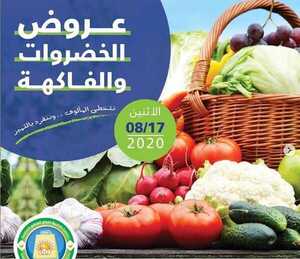 عروض جمعية صباح السالم الكويت الاثنين 17/8/2020 الموافق 27 ذو الحجة 1441 عروض الخضار والفواكه اليوم الاثنين تشكيلة من الخضروات والفواكه الطازجة