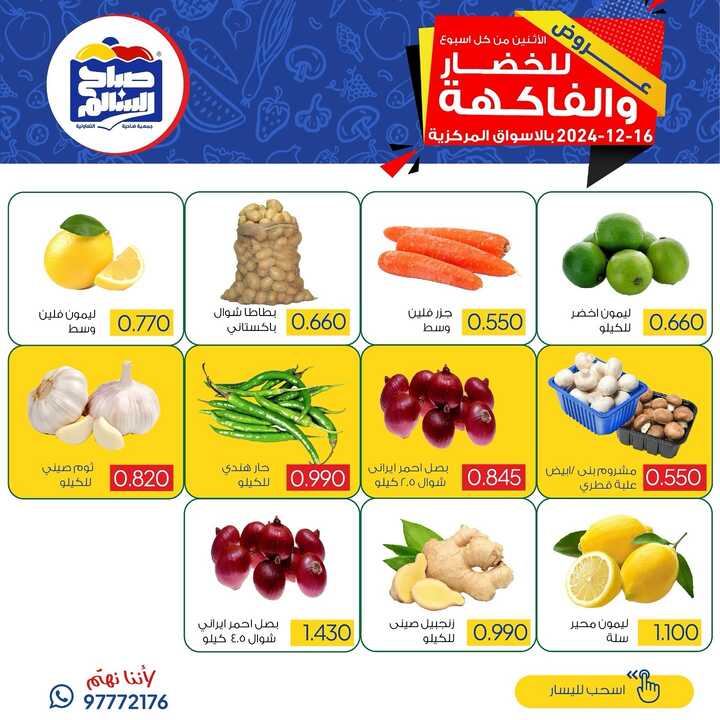 عروض جمعية صباح السالم اليوم 16 ديسمبر 2024 الموافق 15 جمادى الاخر 1446 عروض الخضار و الفواكه بصفحة واحدة