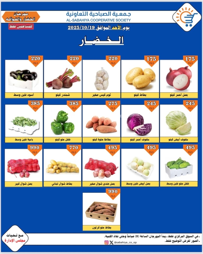 عروض جمعية الصباحية التعاونية اليوم 19 أكتوبر 2025 الموافق 27 ربيع الاخر 1447 عروض الخضار و الفواكه