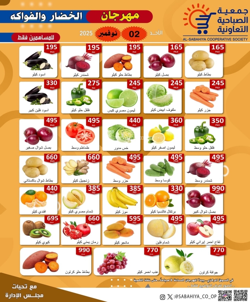 عروض جمعية الصباحية التعاونية اليوم 2 نوفمبر 2025 الموافق 11 جمادى الاول 1447 عروض الخضار و الفواكه