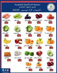 عروض جمعية السالمية التعاونية الكويت فرع حمود الناصر 23/12/2020 الموافق 8 جمادى الأولى 1442 عروض الخضار والفواكه ليوم واحد الأربعاء خضروات وفواكه طازجة 23 دسمبر 2020
