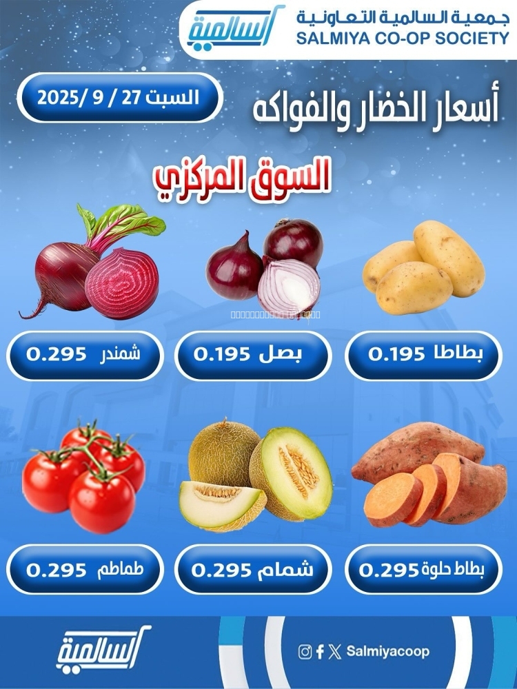 عروض جمعية السالمية التعاونية اليوم 27 سبتمبر 2025 الموافق 4 ربيع الاخر 1447 عروض الخضار و الفواكه
