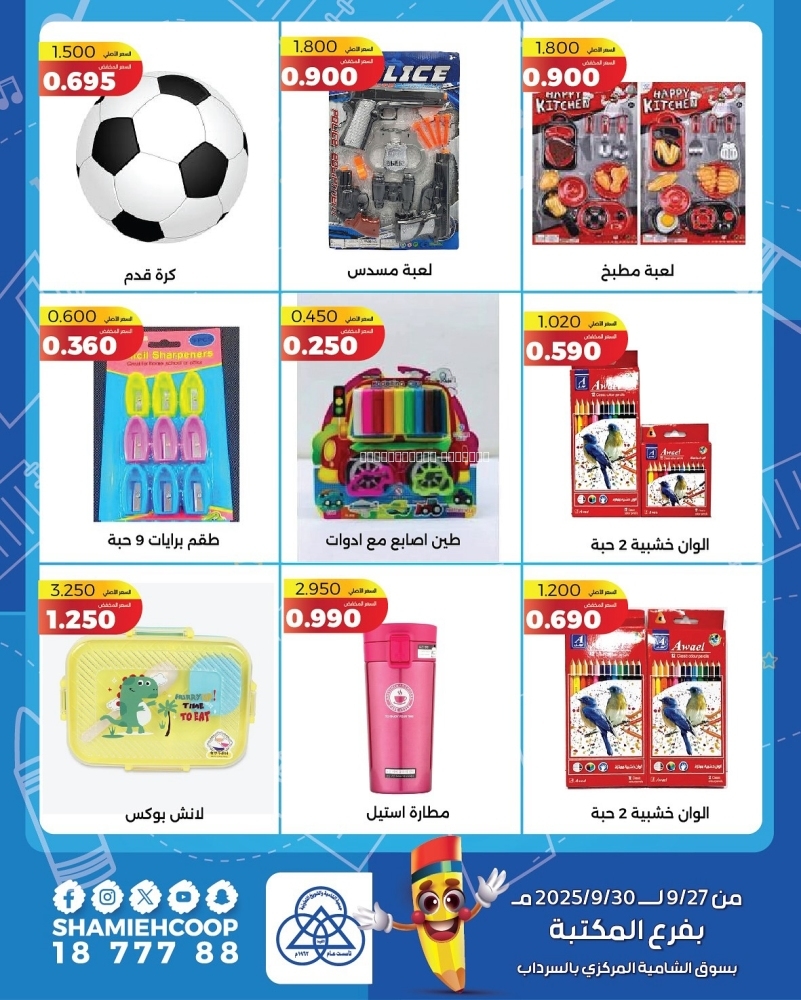 عروض جمعية الشامية و الشويخ التعاونية اليوم 27 سبتمبر 2025 الموافق 4 ربيع الاخر 1447 عروض سبتمبر . تابعوا أحدث عروض السعودية المتوفرة في جميع المتاجر و الهايبرات بأسعار منافسة 27-9-2025 الموافق 4-4-1447 عروض جمعية الشامية و الشويخ التعاونية اليوم : تتضمن تخفيضات جمعية الشامية و الشويخ التعاونية كراون اسفنجة أحذية كبيرة و اسفنجة ذو وجهين . و ايضا كذلك أصيل زيت عبادة الشمس ٧٠٠ مل . لا ننسى ايضا كذلك دورو صابون فريش ١٠٠ جرام ٤ قطعة . و يوجد هنا كذلك ديفا سائل اليدين نعومة ٤٨٠ مل . كما و لدينا ايضا كذلك وايت تواليت مضغوط ٥ بكرة و ١ مجانا . و لا تنسوا ايضا كذلك برسيل جل اتوماتيك انواع مختلفة ٣,٢٥ لتر . ترقبوا كذلك المزيد من العروض والمفاجات في كل أسبوع . عروض جمعية الشامية و الشويخ التعاونية لهذا الأسبوع: و مما تقدمه لكم أيضاً عروض اليوم من عروض كلينكس محارم ورقية ميجا رول ٢٥٠ متر ٢ رول . و ايضا كذلك هجيز حفاضات الاطفال بانتس العناية الفائقة . لا ننسى ايضا كذلك كوتكس فوط صحية ماكسي لكل حبة . و يوجد هنا كذلك الوزن سكر ٨ كيلو جرام . كما و لدينا ايضا كذلك روبالي ارز هندي ٧ كيلو جرام . و لا تنسوا ايضا كذلك ارز بسمتي الوزان ايفري داي اكس ال ٥ كيلو جرام . واليكم الصور الآتية على موقع عروض الكويت