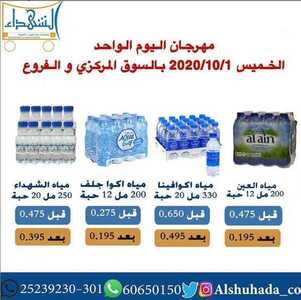 عروض جمعية ضاحية الشهداء التعاونية الكويت الخميس 1/10/2020 الموافق 14 صفر 1442 مهرجان اليوم الواحد بالسوق المركزي والفروع مهرجان المياه