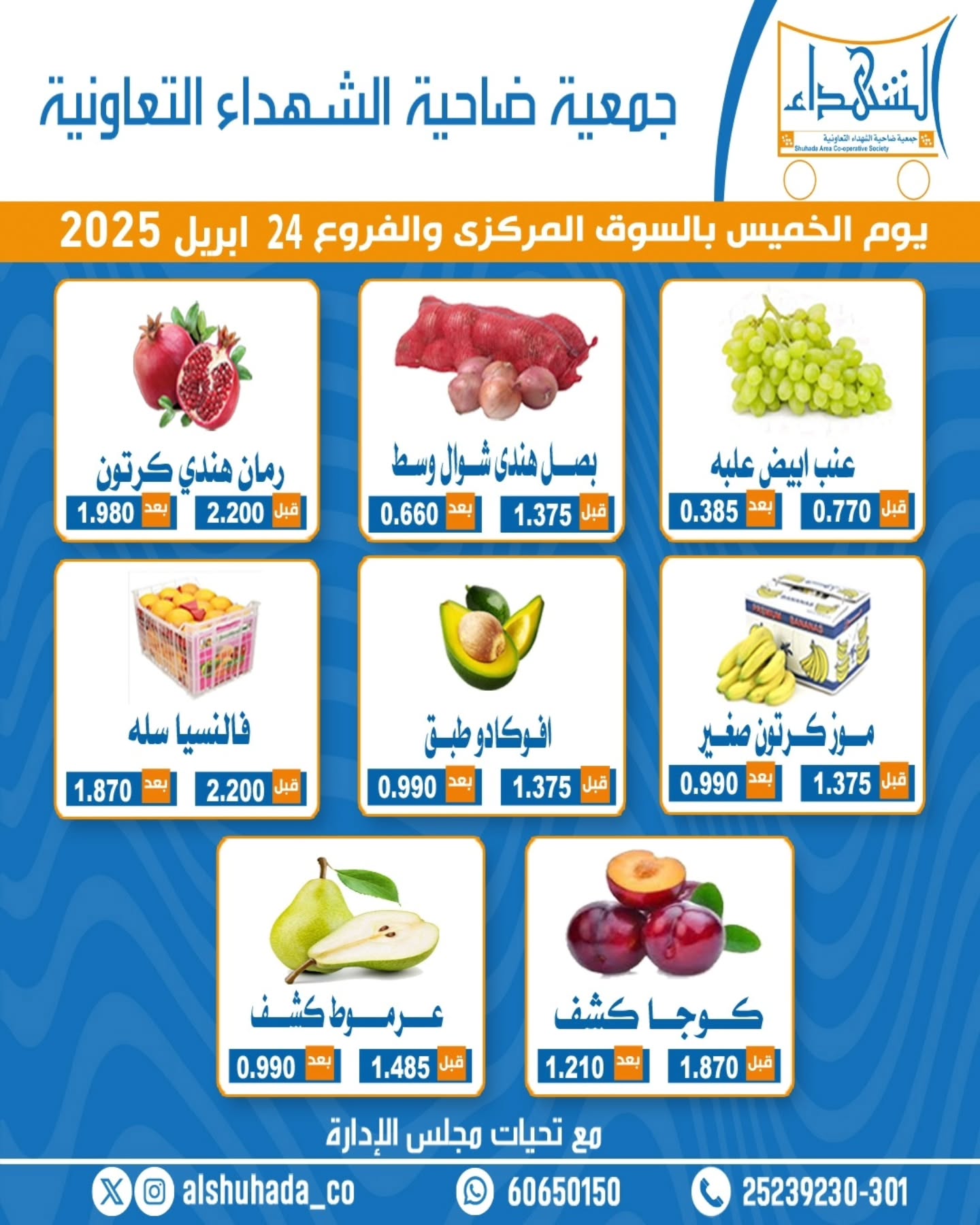 عروض جمعية ضاحية الشهداء التعاونية اليوم 24 أبريل 2025 الموافق 25 شوال 1446 عروض يوم الخميس بصفحة واحدة