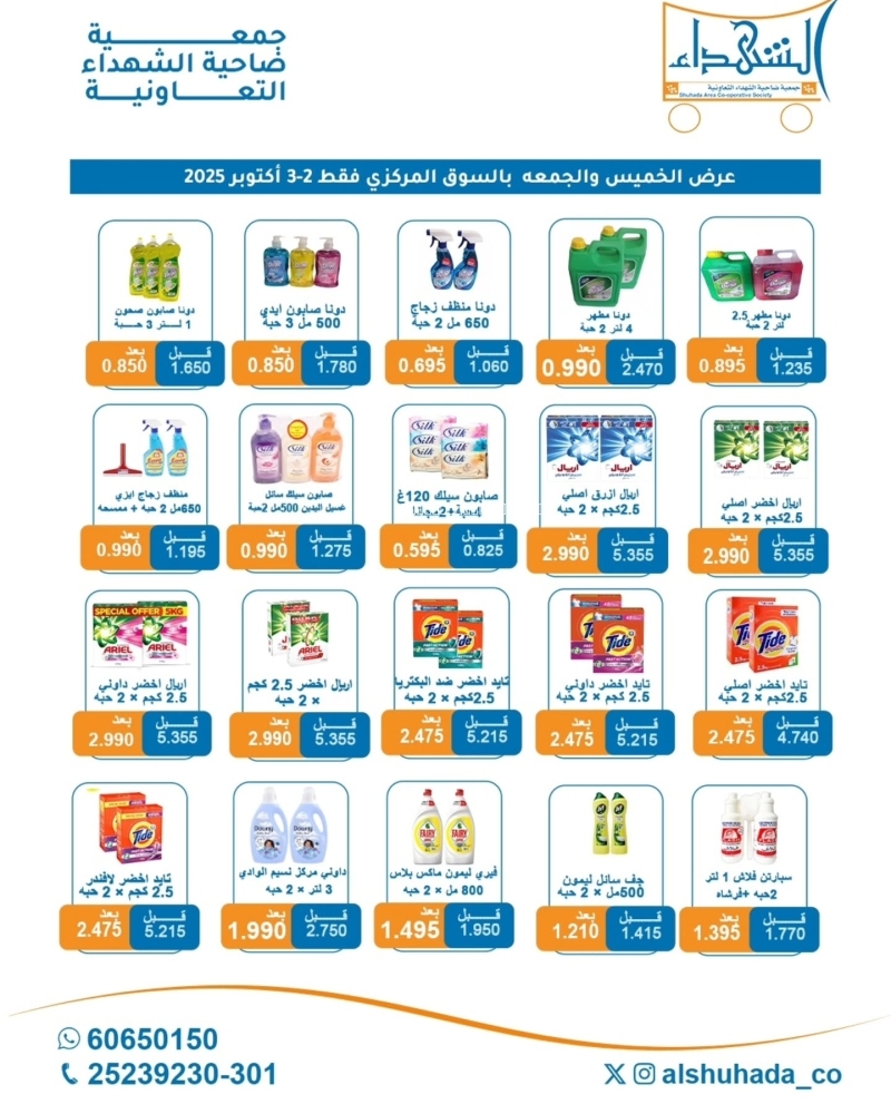 عروض جمعية ضاحية الشهداء التعاونية اليوم 2 أكتوبر 2025 الموافق 9 ربيع الاخر 1447 عروض الخضار و الفواكه