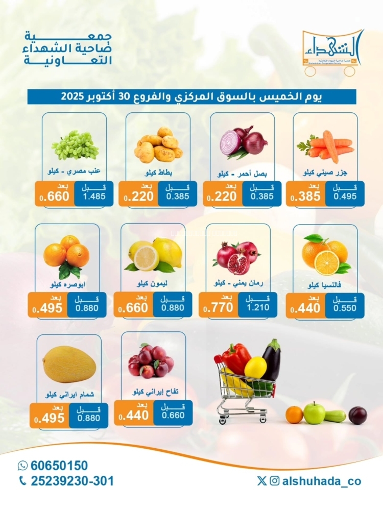 عروض جمعية ضاحية الشهداء التعاونية اليوم 30 أكتوبر 2025 الموافق 8 جمادى الاول 1447 عروض يوم الخميس . تابعوا أحدث عروض السعودية المتوفرة في جميع المتاجر و الهايبرات بأسعار منافسة 30-10-2025 الموافق 8-5-1447 عروض جمعية ضاحية الشهداء التعاونية اليوم : تتضمن تخفيضات جمعية ضاحية الشهداء التعاونية سيجال معجون اسنان يكافح التسوس 4 × 120 مل . و ايضا كذلك لوكس صابون للبشرة 6 × 170 جم . لا ننسى ايضا كذلك لوريال باريس الفيف شامبو متنوع 400 مل × 360 مل . و يوجد هنا كذلك غلو اند لفلي كريم للوجه 2 × 100 جم . كما و لدينا ايضا كذلك انشانتر بودرة معطرة 3 × 225 جم . و لا تنسوا ليضل كذلك كوزمو تايغر ابيض 100 مل + اسود 100 مل . ترقبوا كذلك المزيد من العروض و المفاجات في كل أسبوع . عروض جمعية السلام التعاونية لهذا الأسبوع: و مما تقدمه لكم أيضاً عروض اليوم من عروض كلور خلطة البشاميل ٣ حبة ٧٥ جرام و ١ حبة مجانا . و ايضا كذلك معكرونة قودي ٣ حبة ٥٠٠ جرام . لا ننسى ايضا كذلك ارز الياسمين ٥ كيلو غرام . و يوجد هنا كذلك أرز بسمتي مصطفى رقم واحد ٩ كيلو جرام . كما و لدينا ايضا كذلك معجون أسنان كلوز اب ٣ حبة . و لا تنسوا ايضا كذلك صابون صحون كاليون ١ حبة . واليكم الصور الآتية على موقع عروض الكويت