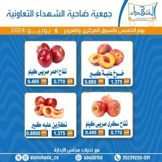 عروض جمعية ضاحية الشهداء اليوم 6 يونيو 2024 الموافق 29 ذو القعدة 1445 عروض يوم الخميس بصفحة واحدة . تابعوا أحدث عروض اليوم 6-6-2024 الموافق 29-11-1445