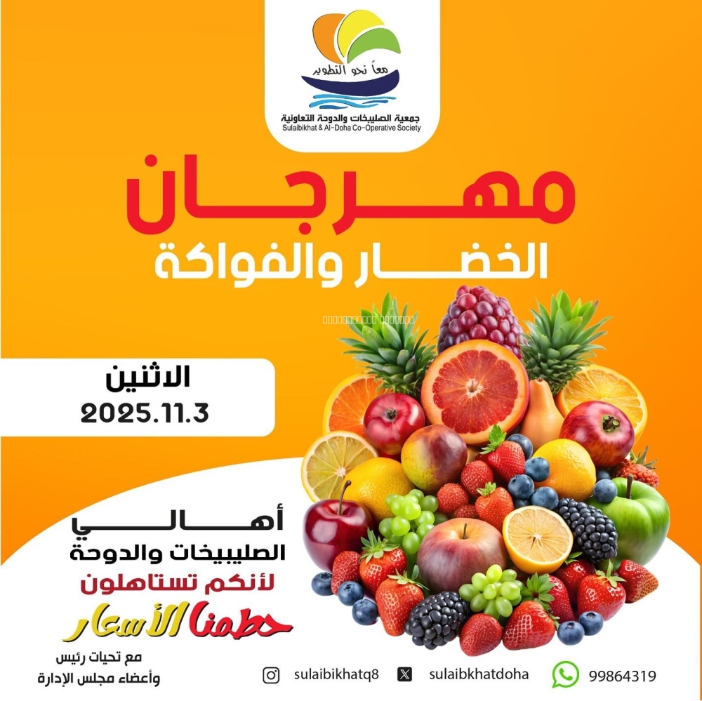 عروض جمعية الصليبخات و الدوحة التعاونية اليوم 3 نوفمبر 2025 الموافق 12 جمادى الاول 1447 عروض الخضار و الفواكه