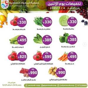 عروض جمعية اليرموك الكويت الإثنين 4/1/2021 عروض الخضار الموافق 20 جمادى الأولى 1442 تخفيضات وزعروض جديدة ليوم الإثنين لفرع الخضار خضروات طازجة ومنوعة