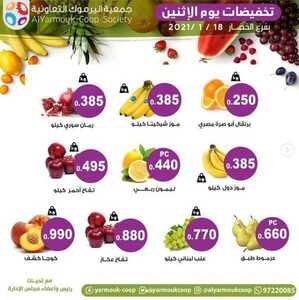 عروض جمعية اليرموك الكويت اليوم الاثنين 18/1/2021 الموافق 5 جمادى الثاني 1442 تخفيضات يوم الاثنين بفرع الخضار تشكيلة منوعة من الخضار والفاكهة الطازجة