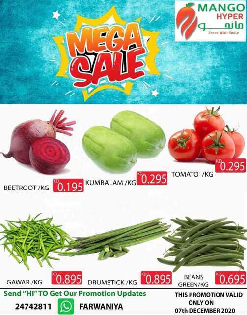 عروض مانجو هايبر ماركت حولي الكويت التعاونية 7/12/2020 الموافق 22 ربيع الثاني 1442 تخفيضات على الخضار الطازجة ليوم الاثنين في مانجو هايبر حولي فقط