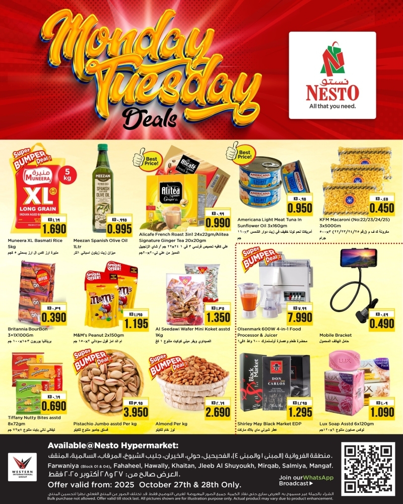 عروض نستو الكويت اليوم 27 أكتوبر 2025 الموافق 5 جمادى الاول 1447 عروض يومي الاثنين و الثلاثاء