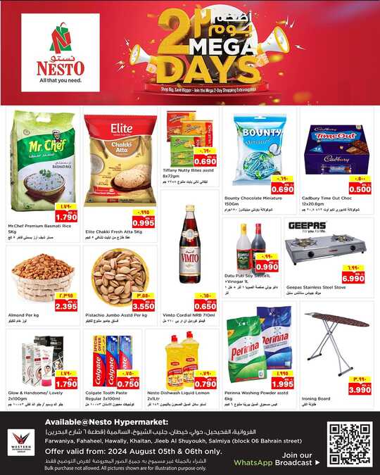 عروض نستو الكويت اليوم 5 أغسطس 2024 الموافق 1 صفر 1446 عروض الاثنين و الثلاثاء بصفحة واحدة . تابعوا أحدث عروض اليوم 5-8-2024 الموافق 1-2-1446