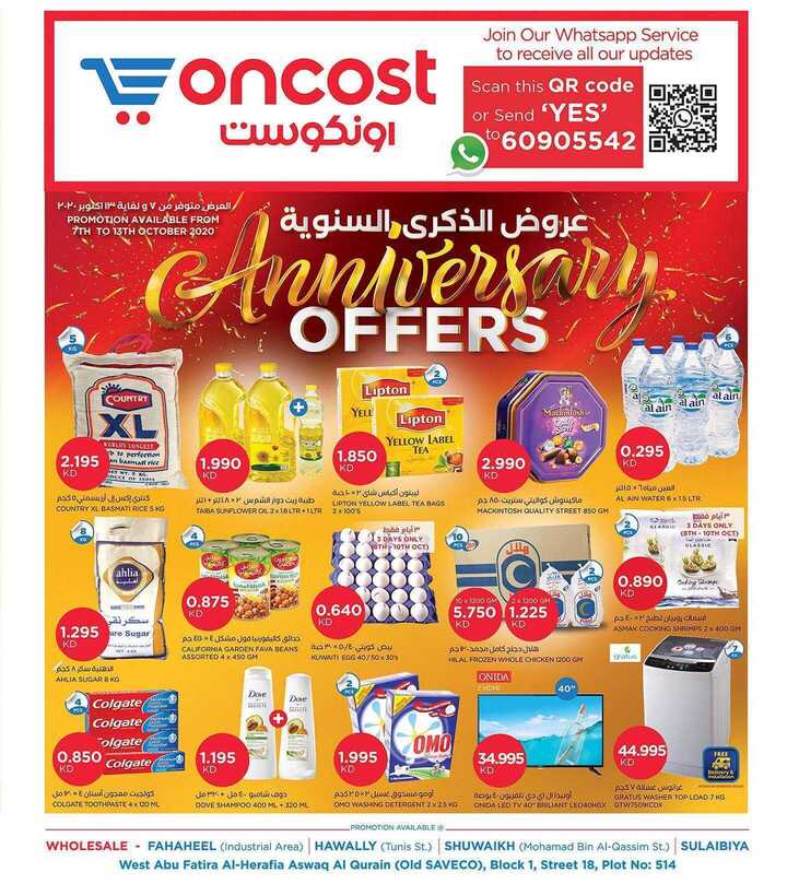 عروض أون كوست الكويت من 7/10/2020 الموافق 20 صفر 1442 عروض الذكرى السنوية اقوى العروض والتخفيضات في أون كوست مجموعة من السلع والبضائع وبسعر منافس