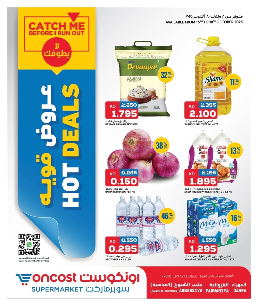 تتضمن تخفيضات اون كوست طماطم كاتشب العلالي ٣٩٥ جرام . و ايضا كذلك تونا خفيفة بالفلفل الحار قودي ١٨٥ جرام . لا ننسى ايضا كذلك لحم تونا أبيض فاخر بوتان ١٨٥ جرام . و يوجد هنا كذلك لحم التونة خفيف في زيت دوار الشمس هناء ١٧٥ جرام . كما و لدينا ايضا كذلك خل ابيض صناعي المواسم ٤٨٣ مل . و لا تنسوا ايضا دجاجة كاملة متبلة نكهات اليوم ٧٥٠ جرام . تجدون كذلك خلطة الغربي بهارات مشكلة حراق ٢٥٠ غرام . ترقبوا كذلك المزيد من العروض و المفاجات في كل أسبوع .