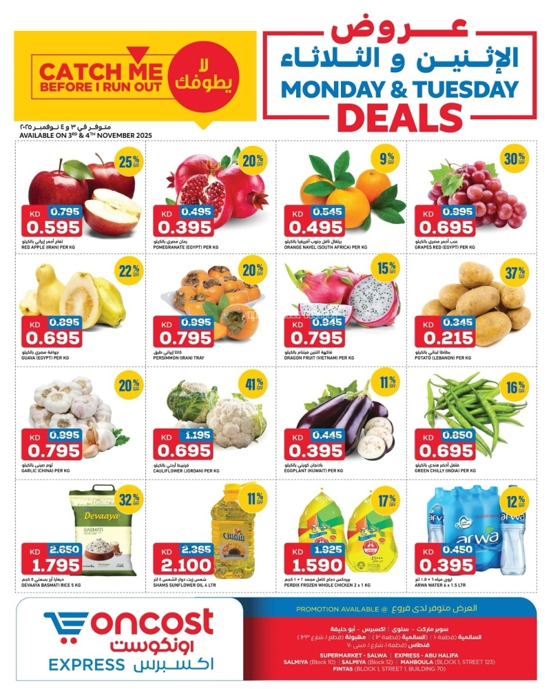 عروض اون كوست اليوم 3 نوفمبر 2025 الموافق 12 جمادى الاول 1447 عروض يومي الاثنين و الثلاثاء