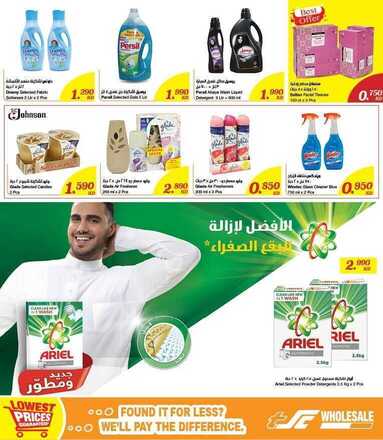 ادوات مطبخ 7 قطع ، تشكيلة اباريق زجاجية مع غطاء ، حامل اواني 12 قطعة ، فوط للارضية 10 قطع ، تشكيلة لحاف مفرد 4 قطع ، لوكس صابون ، كريست معجون اسنان ، اكس تشكيلة بخاخ مزيل للعرق ، كلوركس مبيض للاقمشة جالون ، داك تشكيلة مطهر ، كلوركس منظف الحمام ، كلينكس محارم ورقية للحمام ،