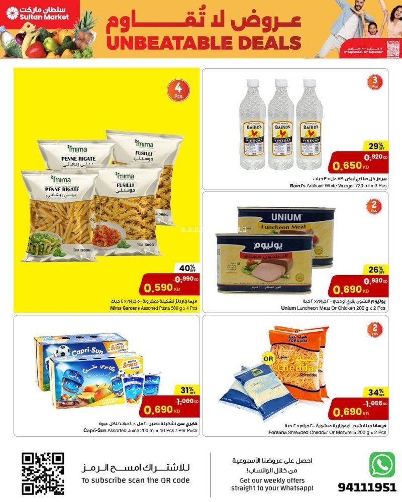 عروض مركز سلطان الأسبوعية 17 سبتمبر 2025 الموافق 25 ربيع الأول 1447 عروض التوفير الأضخم للمدرسة . تابعوا أحدث عروض السعودية المتوفرة في جميع المتاجر و الهايبرات بأسعار منافسة 17-9-2025 الموافق 25-3-1447 عروض مركز سلطان اليوم : تتضمن تخفيضات مركز سلطان خلطة بشاميل كنور ٧٥ جم ٢ حبة و ١ حبة . و ايضا كذلك جيلي الفراولة الملكي ٨٥ جم ١٢ حبة . لا ننسى ايضا كذلك معكرونة الإمارات الشعيرية ٥٠٠ جرام ٣ حبة . و يوجد هنا كذلك ار كي السميد خشن او ناعم ١ كيلو غرام . كما و لدينا ايضا كذلك عسل زهور الصيف بيوفار ١ كيلو جرام . و لا تنسوا ايضا كذلك خليط لقمة القاضي العين ٤٥٣ جرام ٤ حبة . ترقبوا كذلك المزيد من العروض والمفاجات في كل أسبوع . عروض مركز سلطان لهذا الأسبوع: و مما تقدمه لكم أيضاً عروض اليوم من عروض توفيرية هريسة فاخرة بالفستق بالكيلو جرام . و ايضا كذلك منسف دجاج بالكيلو جرام . لا ننسى ايضا كذلك سمك مشوي مع الليمون و الأعشاب بالكيلو جرام . و يوجد هنا كذلك صلصة منشوريان خضار بالكيلو جرام . كما و لدينا ايضا كذلك تورتيلا لولو ٤٤٨ جرام ٨ حبة او شباتي ٦ حبة ٢٨٨ جرام . و لا تنسوا ايضا كذلك مسحوق غسيل اومو متنوع ٥ كيلو جرام للقطعة . واليكم الصور الآتية على موقع عروض الكويت