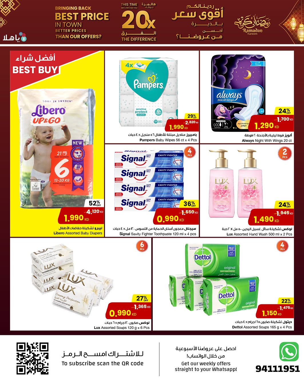 و مما تقدمه لكم أيضاً عروض اليوم من عروض توفيرية لوكس صابون 120 جم × 6 حبات . و ايضا كذلك باراشوت تشكيلة زيت للشعر 300 مل + 170 مل . لا ننسى ايضا كذلك هربسينديا تشكيلة زيت للشعر 250 مل × 2 حبة . و يوجد هنا كذلك باراشوت تشكيلة كريم للشعر 140 مل × 2 حبة . كما و لدينا ايضا كذلك سفن دايز كروسان فراولة او شوكولاتة 55 جم × 6 حبات لكل عبوة . و لا تنسوا ايضا كذلك سفن دايز تشكيلة كيك بار 25 جم × 12 حبة .