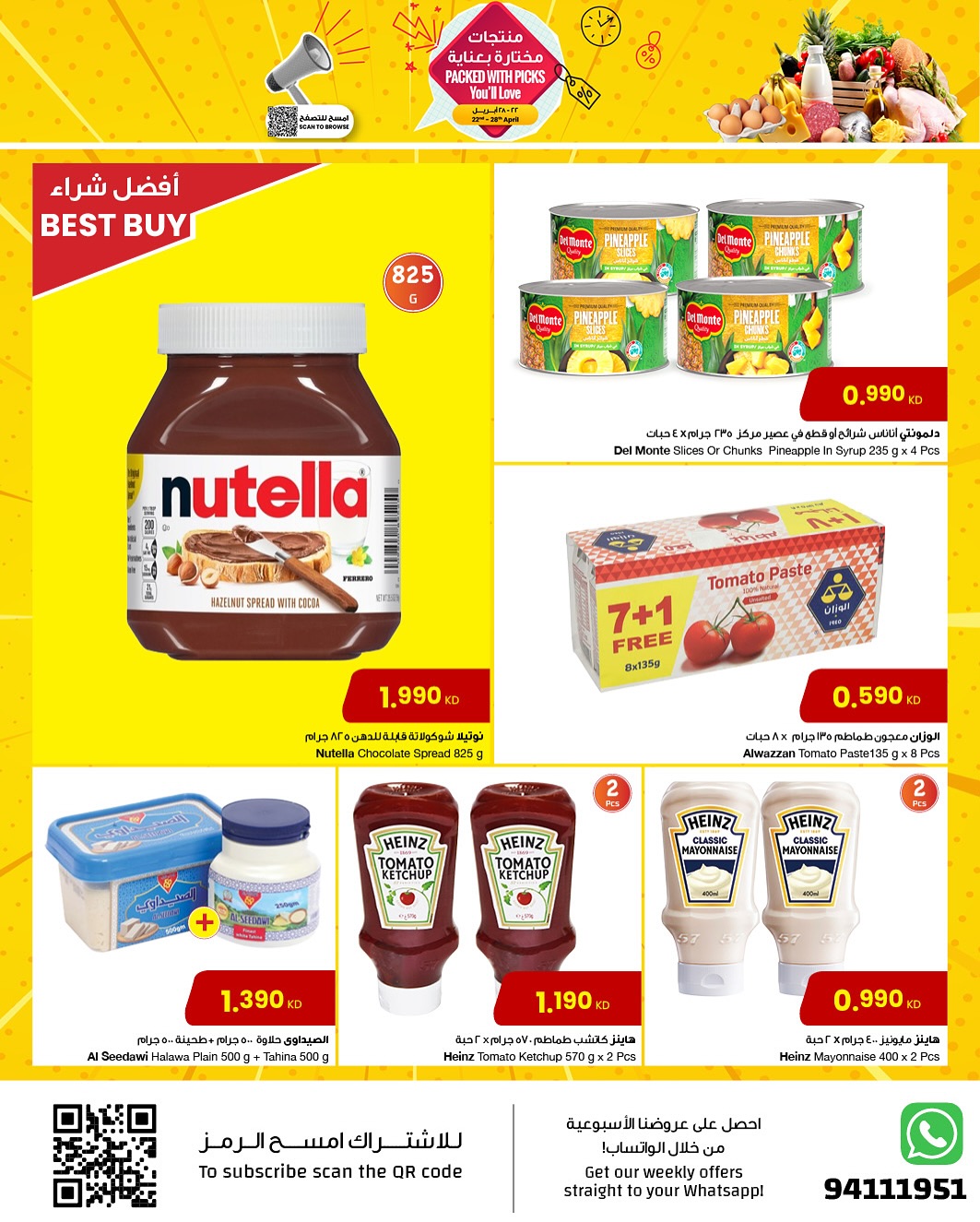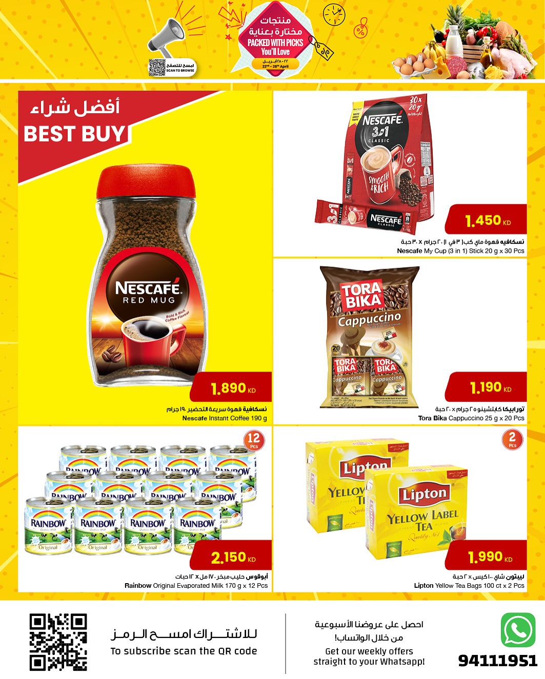 تتضمن تخفيضات مجلة هذا الأسبوع حسم مميز وخاص على المنتجات المتوفرة في متاجرنا فتجدون هنالك تخفيض على كومفور تمنعم الاقشمة المركز ١٤٤٠ مل متنوعة . و ايضا كذلك برسيل عبايا غسيل اسود ٢,٩ لتر متنوعة . لا ننسى ايضا كذلك أرز المصري الغزال ١ كيلو جرام . و يوجد هنا كذلك دقيق الست غالية ١ كيلو جرام . كما و لدينا ايضا كذلك مكرونة المطبخ انواع ٤٠٠ جرام . و لا تنسوا ايضا كذلك جبنة ناشفة بالفلفل ٢٠٠ جرام . تجدون كذلك حليب مزارع دينا كوفي شيك ٢٥٠ مل .
